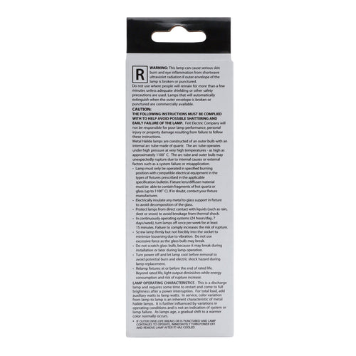 The Feit Electric 100-watt E26 Base 4000K Metal Halide HID lamp light is an ED17-shaped bulb for industrial and retail high or low bays, streetlights, and parking lots. It is a traditional metal halide bulb that produces a light output of 8,500 lumens using 100 watts of electricity. Use these bulbs only with ANSI ballast M90. Feit Electric MH100/U/MED Halide bulbs have a lifetime rating up to 10,000 hours, with an estimated annual energy cost of $12.05. Choose a dependable Feit Electric light bulb for your residential and commercial needs. For a safe, long-lasting HID replacement option, choose Feit Electric C10000/5K/LEDG3/HDRP Corn Cob LED bulbs. Energy-efficient LED technology puts out high lumens while saving energy. They are shatter-resistant and 100% mercury-free. The lifetime of the LED bulb is rated up to 25,000 hours. Replace metal halide with LED bulbs and start saving money on electric bills and maintenance today.